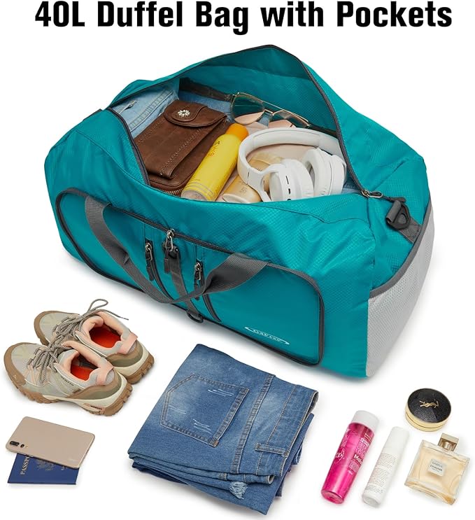 • Large Capacity for Easy Store - 40L Travel duffel bag folds up super small size, while extends to 21.6 x 8.6 x 12 inches and use as a luggage bag in case that your suitcase swells. Just take it for your airline trips as it obeys airline personal item size. Perfect for easy storing in any size yoga locker.