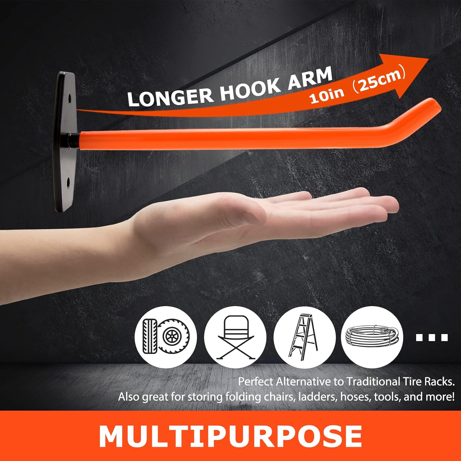 8 PCS Garage Hooks Heavy Duty Wall Mount, Tire Storage System with Anti-Slip Coating, Hang Heavy Tools for up to 88Lbs, for Bikes, Ladders, Chairs and Bulky Tools