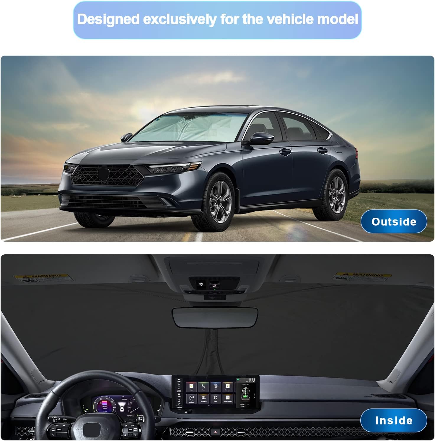 - 1.Custom Fit: this windshield sun shade is custom designed for 2018 2019 2020 2021 2022 2023 2024 Honda Accord Hybrid Sport EX-L Sport-L Touring sunshade for front window.You don’t need to worry about oversize or too small,consider it if you need a car protector cover that protects your car interior from sunburn.