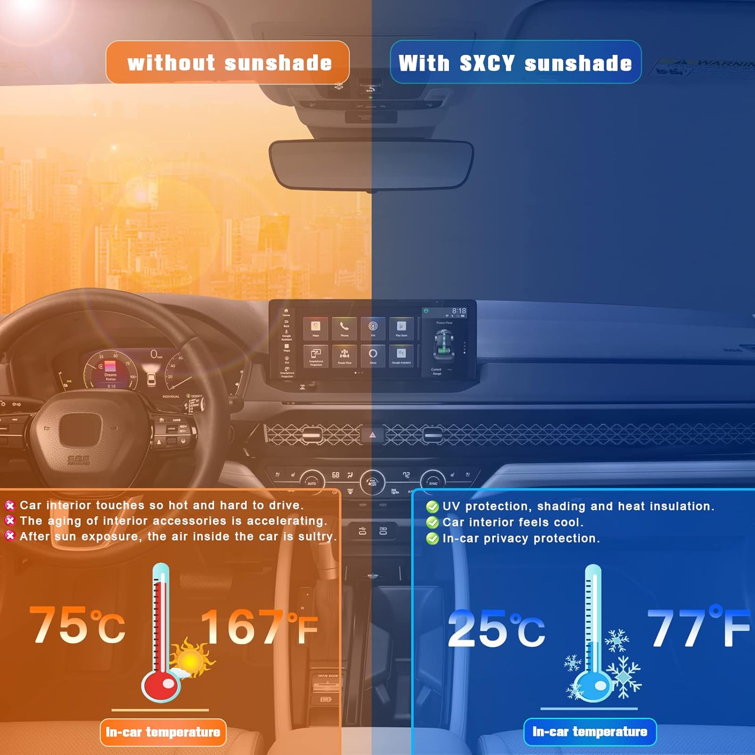 - 2.Sun Protection: Solve your concerns about parking for a long time under the scorching sun,prevent the 2023 2024 Accord 's interior from getting sunburned and extend your 2022 2023 2024 accord interior accessories’life.