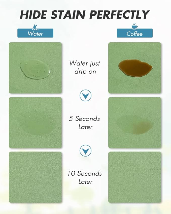 - NO WATER MARKS: 0.2" thick special PU surface hide coffee stains, milk stains and any other dark messy stains well. Say goodbye to traditional coffee mat full of stains