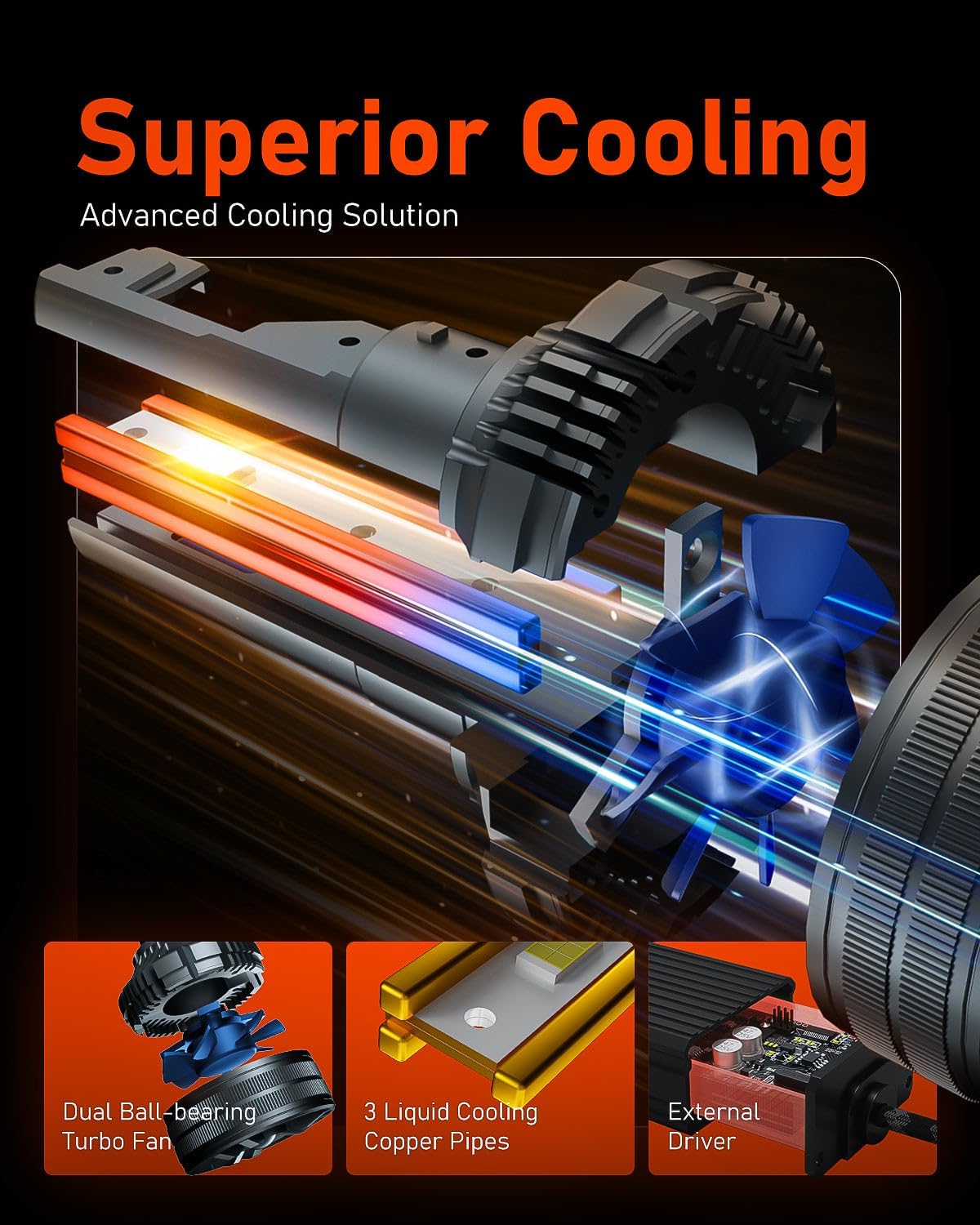 - The Ultimate Art of Heat Balance - For the first time, our Punisher series innovatively incorporates a combination of three independent liquid-cooled copper tubes and a double-layered copper plate, paired with an external driver for optimal heat distribution and balance. This ensures that the TalonLED remains at peak performance without overload.
