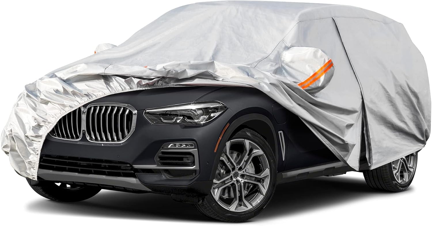 Kayme 6 Layers SUV Car Cover Custom Fit for BMW X5 (2007-2025) Waterproof All Weather for Automobiles, Outdoor Full Cover Rain Sun UV Protection.Silver