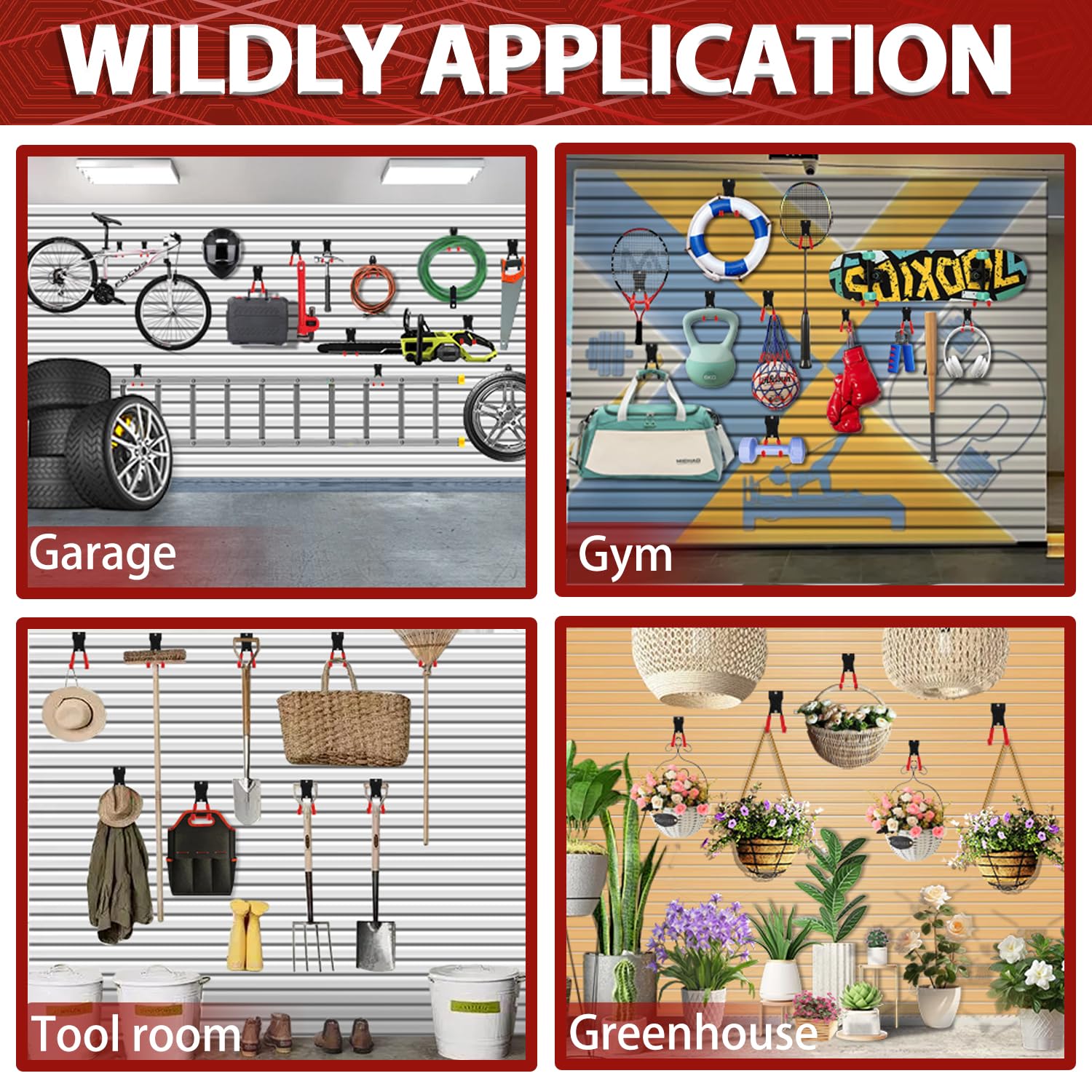 - Easy to Install and Space Saving: Slat wall hanging hooks fit standard slat wall like Proslat, Handiwall, Crownwall, etc., you can directly place storage hooks to both sides of the panel groove, fix garage hooks for hanging into the groove on the slatwall panel then press slat wall hanging hooks down then the wall hooks will fit the slat wall perfectly. Then you can move slat wall accessory to anywhere you want,saving you time and effort