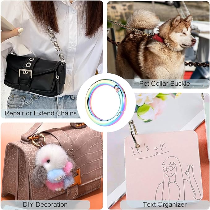 - Creative Matching: Round keyring clip can decorate and replace most items, such as key ring, keychain hardware, small dog leashes, dog collar tags, purse hardware, handbag shoulder bag strap, exercise band, bag tassel, keychain clip and outdoor paracord keychain lanyard or match with your desired hanging crafts or decorations, carabiner o ring is a great DIY accessory, can be given as a gift to a friend