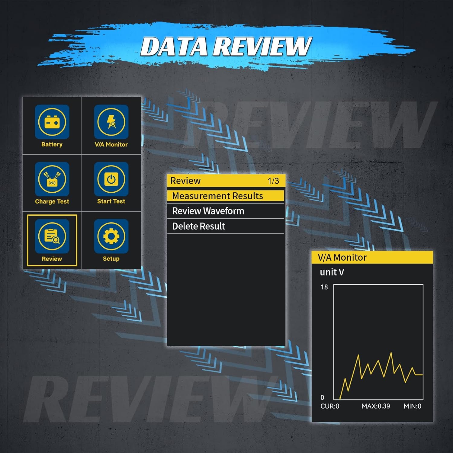 - 【Data Review Function】The data review function not only allows you to view the measurement results of the last test, but also to play back the waveform. Up to 10 playback records can be recorded, which is convenient for users to check the data.