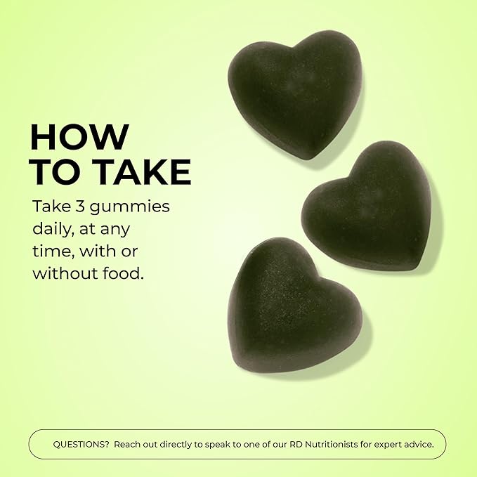 - DAILY GREEN BOOST MADE EASY - Get your daily green boost without the hassle of juicing. Simply take 3 gummies at any time, with or without food. One bottle contains 60 Vegan Gummies, perfect for a month's supply.*