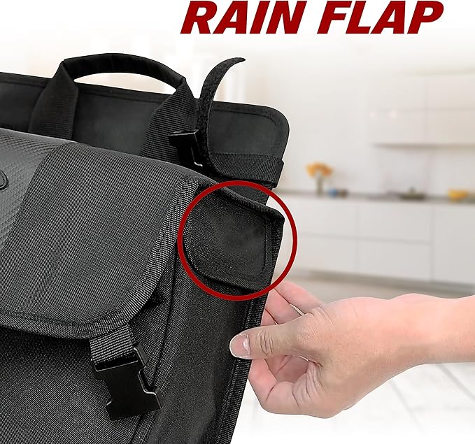 - Carries up to 19.8 pounds , all weather rain cover included for each pannier
