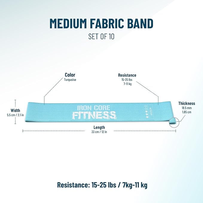 Fabric Mini Resistance Bands Sets for Trainers, Bootcamp, Gym for Men and Women in Fun Colors - Ebook, Videos and Workout Chart Included by Iron Core Fitness