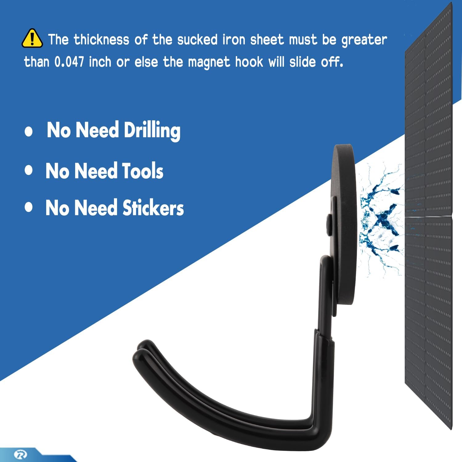- Each magnet base is equipped with 12 rare earth magnets inside.The thickness of the sucked iron sheet must be greater than 0.047inch/1.2mm.or else the magnetic hook will slide off.