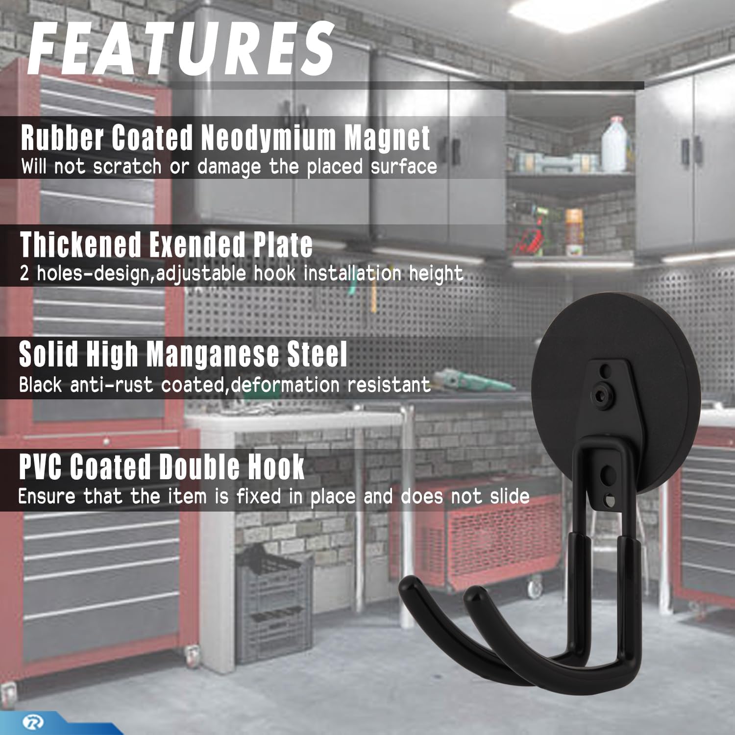 2 Pcs Magnetic Hook Heavy Duty, Strong Magnet Hooks for Garage Tools Hose Rope Electric Drill (Large)