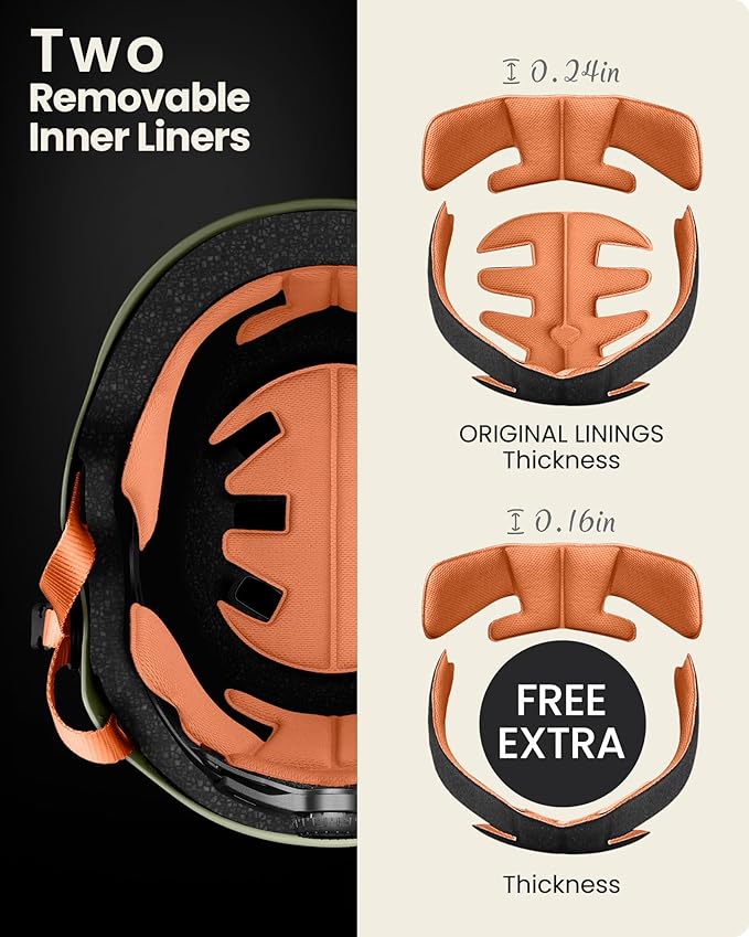 - Extra Removable Lining: Skateboard helmet with two removable liner for different head sizes and easy to wash the sweat away