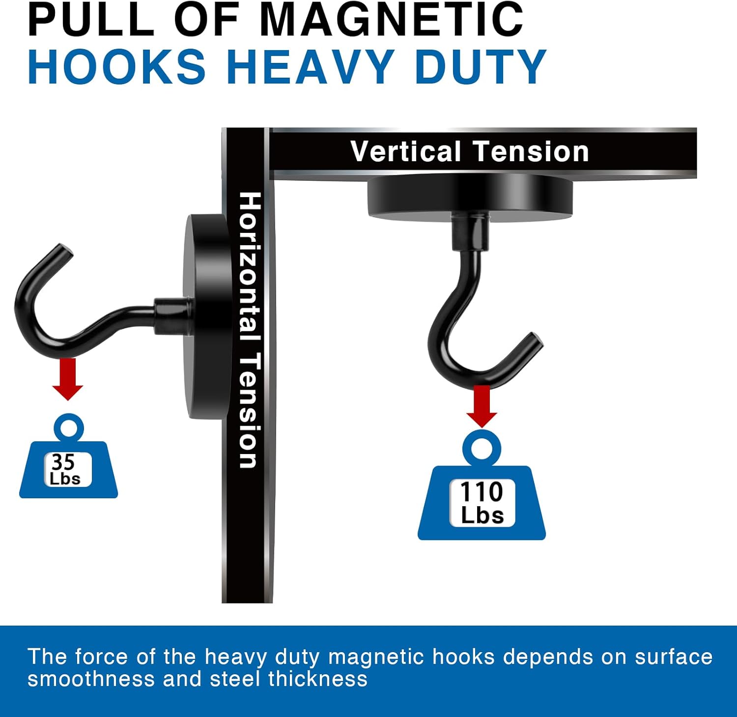- 【POWERFUL HOOK MAGNETS】With our magnetic hooks heavy duty, you can achieve a pulling force of over 110LBS in the vertical direction and 35LBS in the horizontal direction. These amazing sturdy cruise magnetic hooks are perfect for hanging the items you need, making your life more organized.