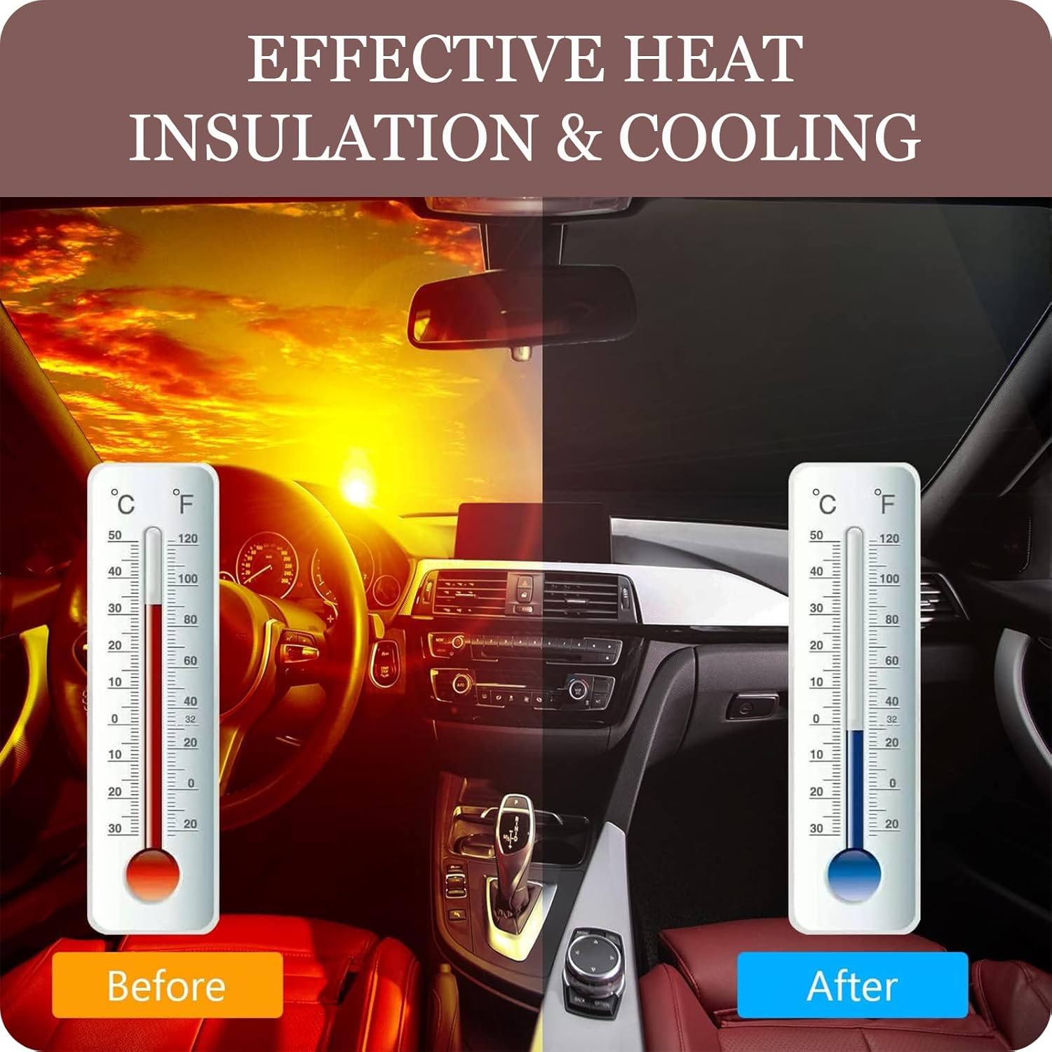 - APPLICATION SCENARIO: You can easily open and fold it when the car is parked outdoors for a long time, such as fishing, picnic, hiking, camping, outdoor activities and so on. Now you can design new ideas for the car windshield visor and make it a perfect gift for Christmas, Halloween, Father's Day, Memorial Day and other holidays.