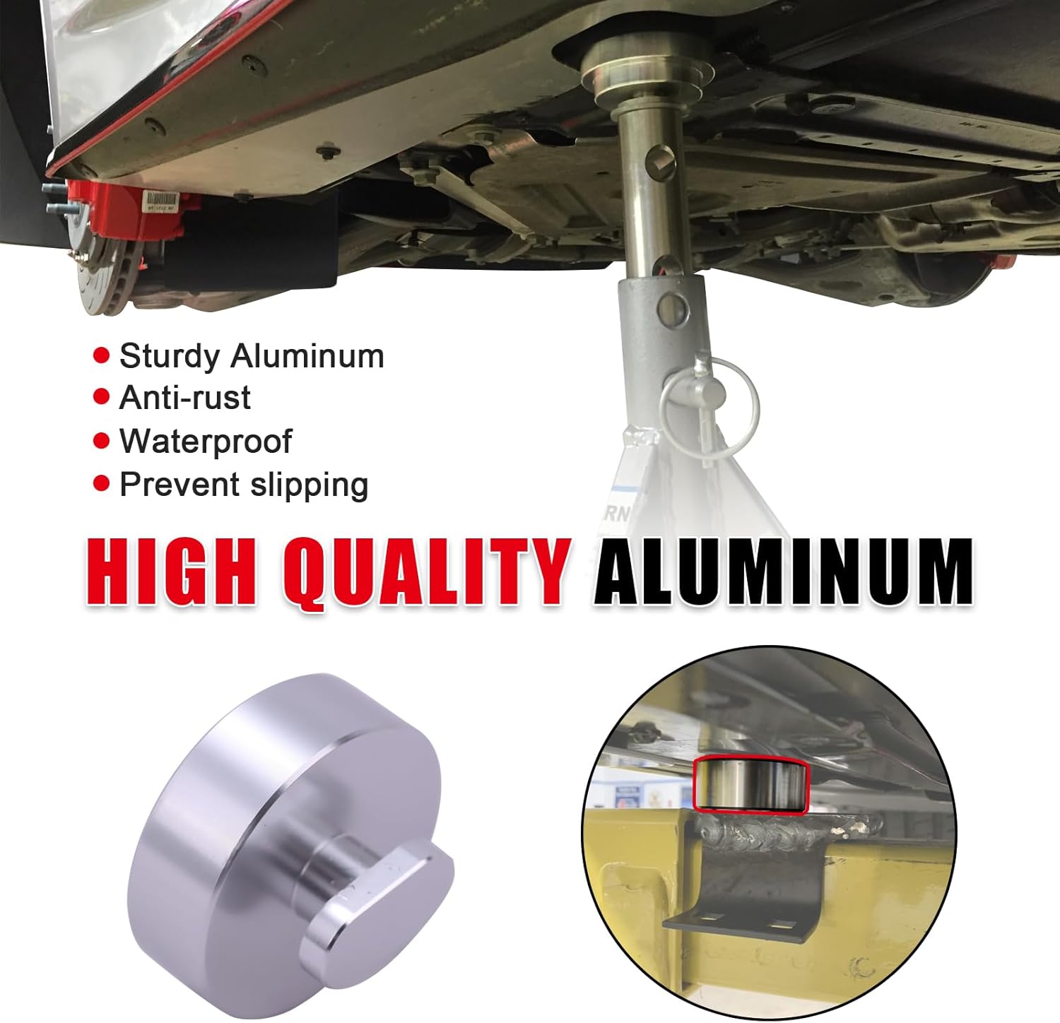 - 【High Quality Aluminum】Crafted from a solid block of billet aluminum, our jack pad adapter kit boasts superior quality and durability. With no odor and enhanced strength, it provides long-lasting performance unlike rubber products.