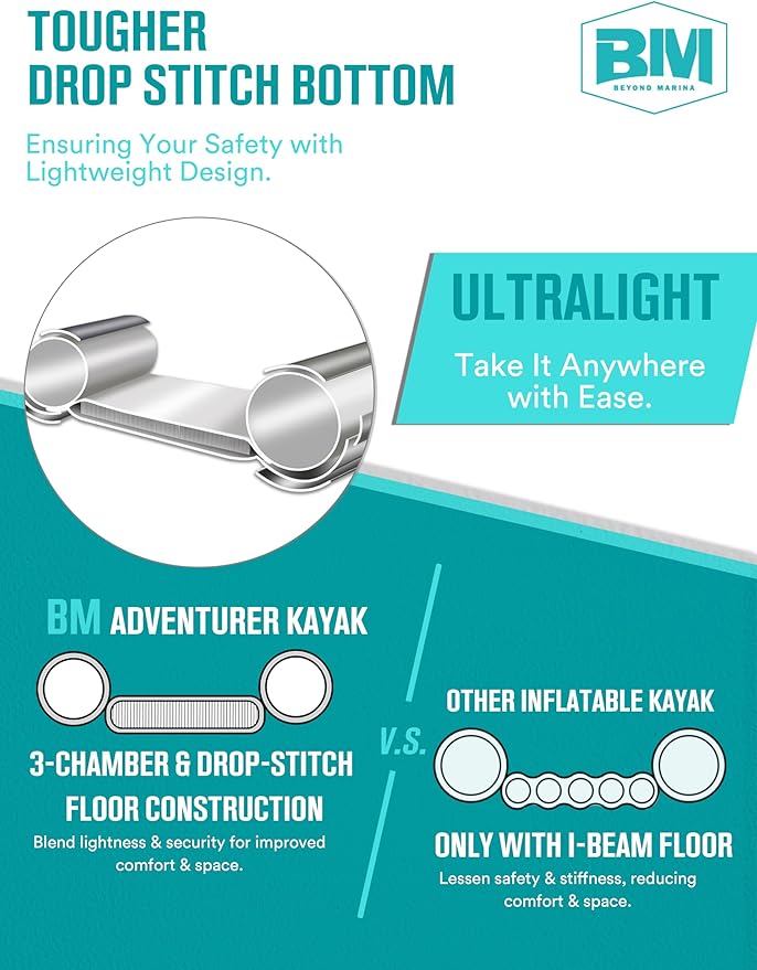 - SECOND TO NONE SERVICE: Tri-chamber construction serves for ultimate balance & stability while kayaking. As a brand player, we always stand behind our products. Just paddle around and enjoy the outdoors with the support of BEYOND MARINA's 24/7 commitment.