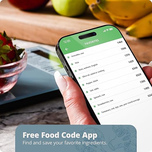 - More Space: The meal prep scale comes loaded with the nutritional values of 2,000 foods and has space for 99 custom entries. NOTE: This scale is non-connected but does come with a free food code app just in case you lose the included booklet.