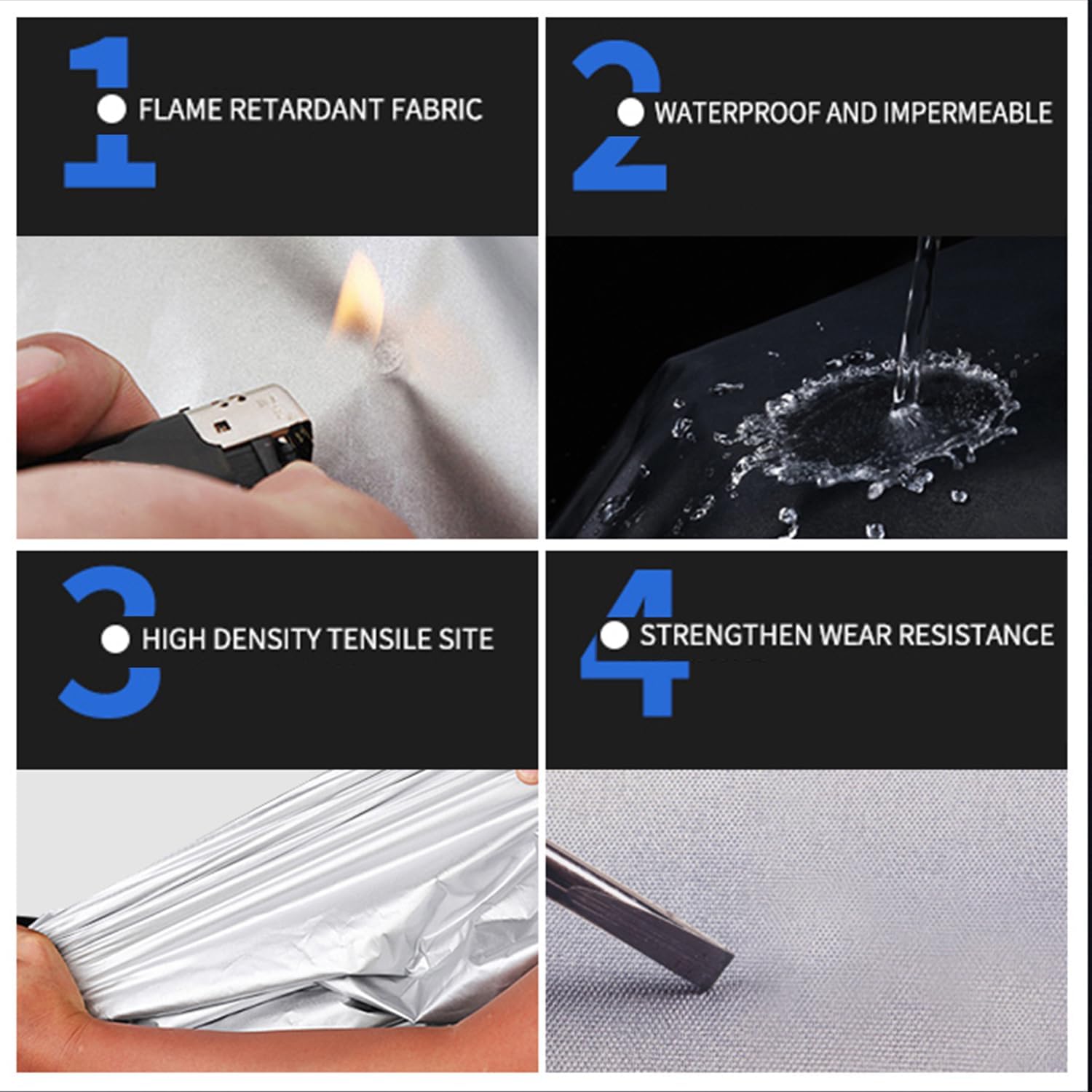 - Waterproof & UV Resistant: Highly waterproof material and UV resistant layer prevent fading and extend the service life of the car cover.Elasticized hem and three fixed buckles provide extra stability and protection against strong winds.