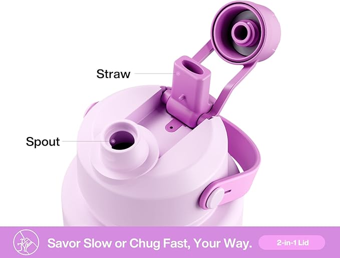 40 oz Insulated Water Bottle with 2-in-1 Straw and Spout Lid, Keep Cold 24H, Leak-Proof, BPA-Free, Double Wall Stainless Steel Water Bottle for Sports, Gym, Travel, and School (Misty Lilac)