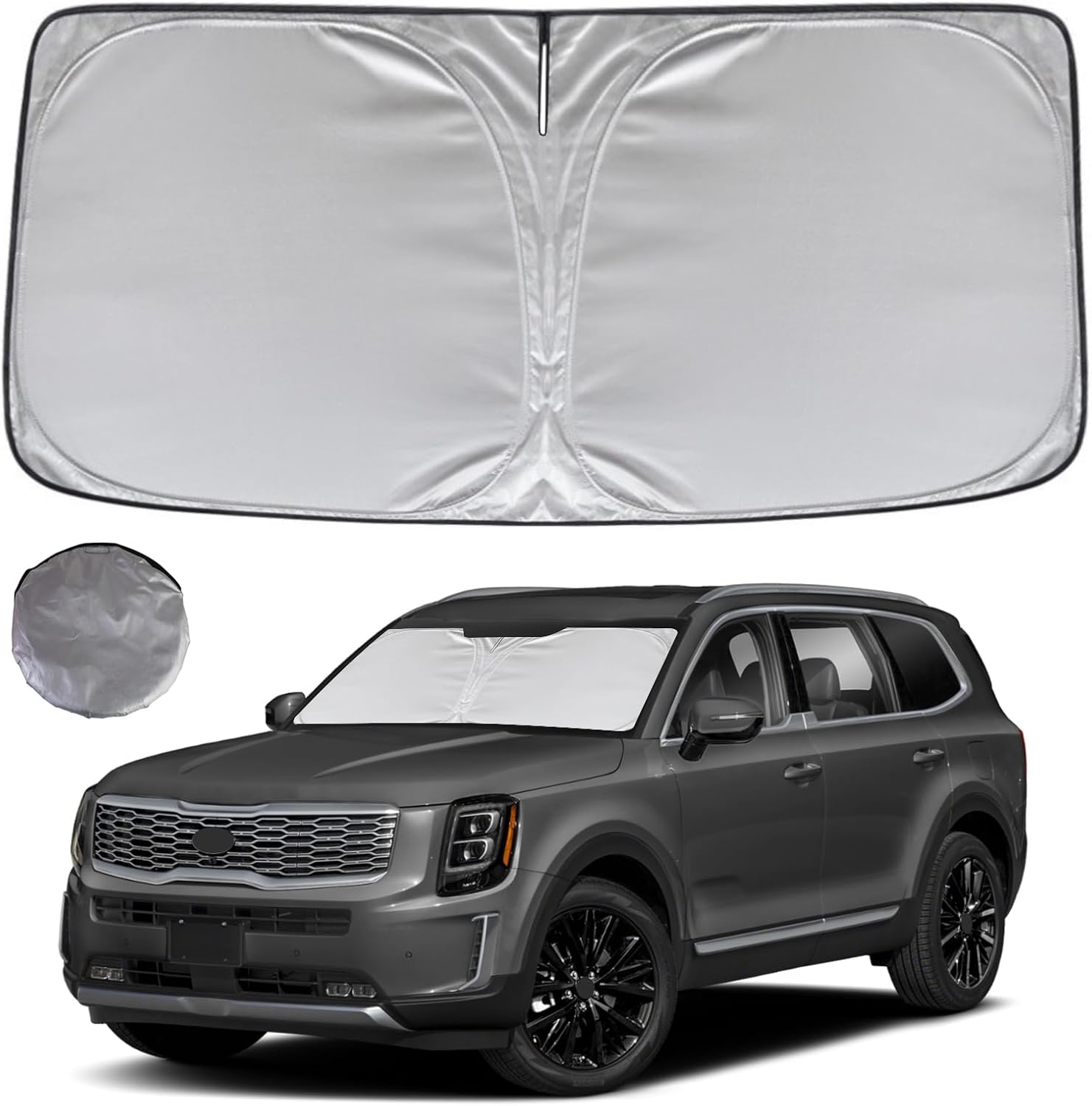 - KAYZT windshield sun shade is precise custom fit for 2020 2021 2022 2023 2024 2025 Kia Telluride, Thoroughly covers every corner of the windshield, Tailored to accommodate rear view mirror, Ensuring a seamless and snug fit without obstruction, Must have car accessories for Kia Telluride