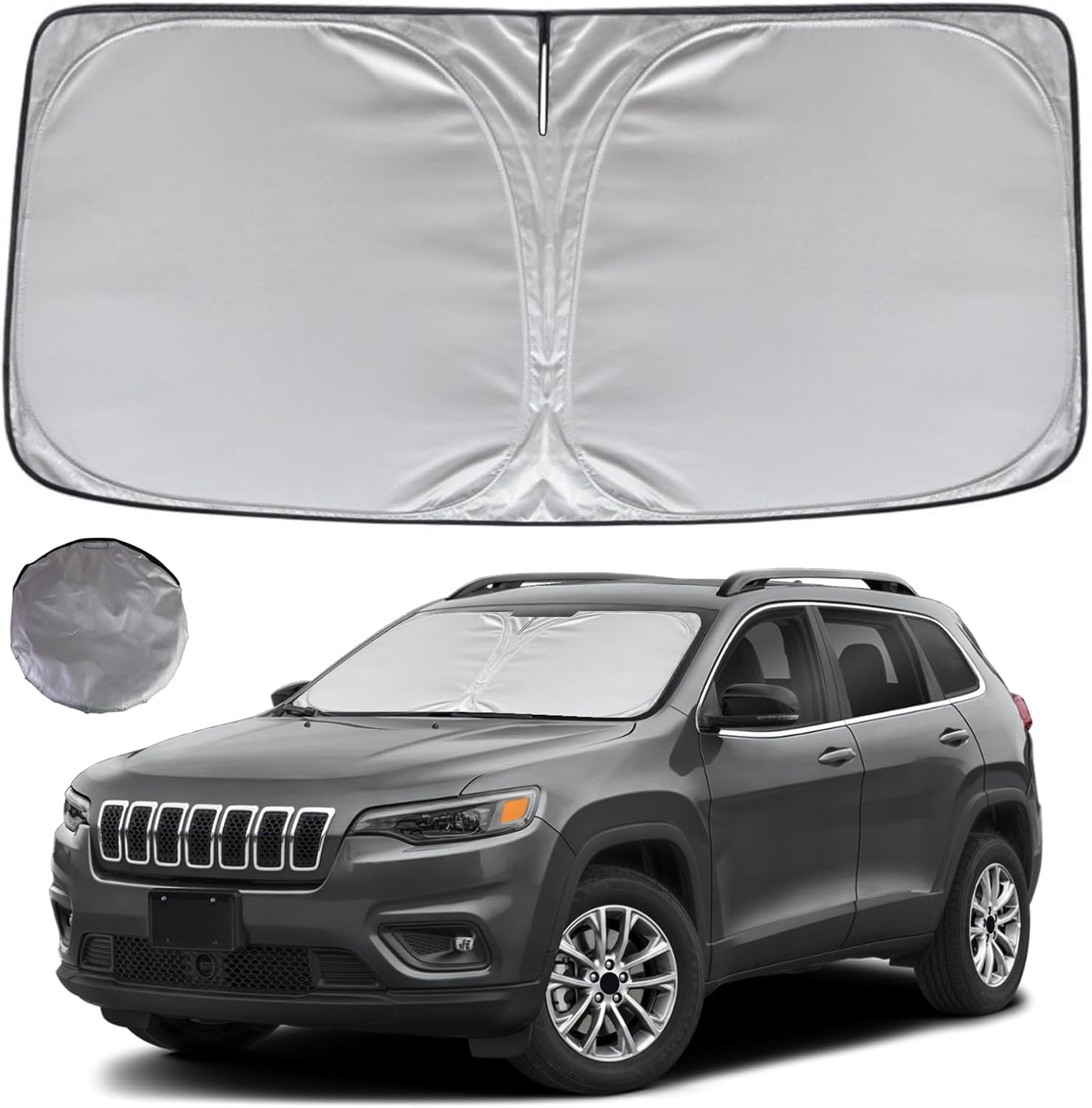 - KAYZT windshield sun shade is precise custom fit for 2014 2015 2016 2017 2018 2019 2020 2021 2022 2023 Jeep Cherokee (Not for Jeep Grand Cherokee), Thoroughly covers every corner of the windshield, Tailored to accommodate rear view mirror, Ensuring a seamless and snug fit without obstruction, Must have car accessories for Cherokee