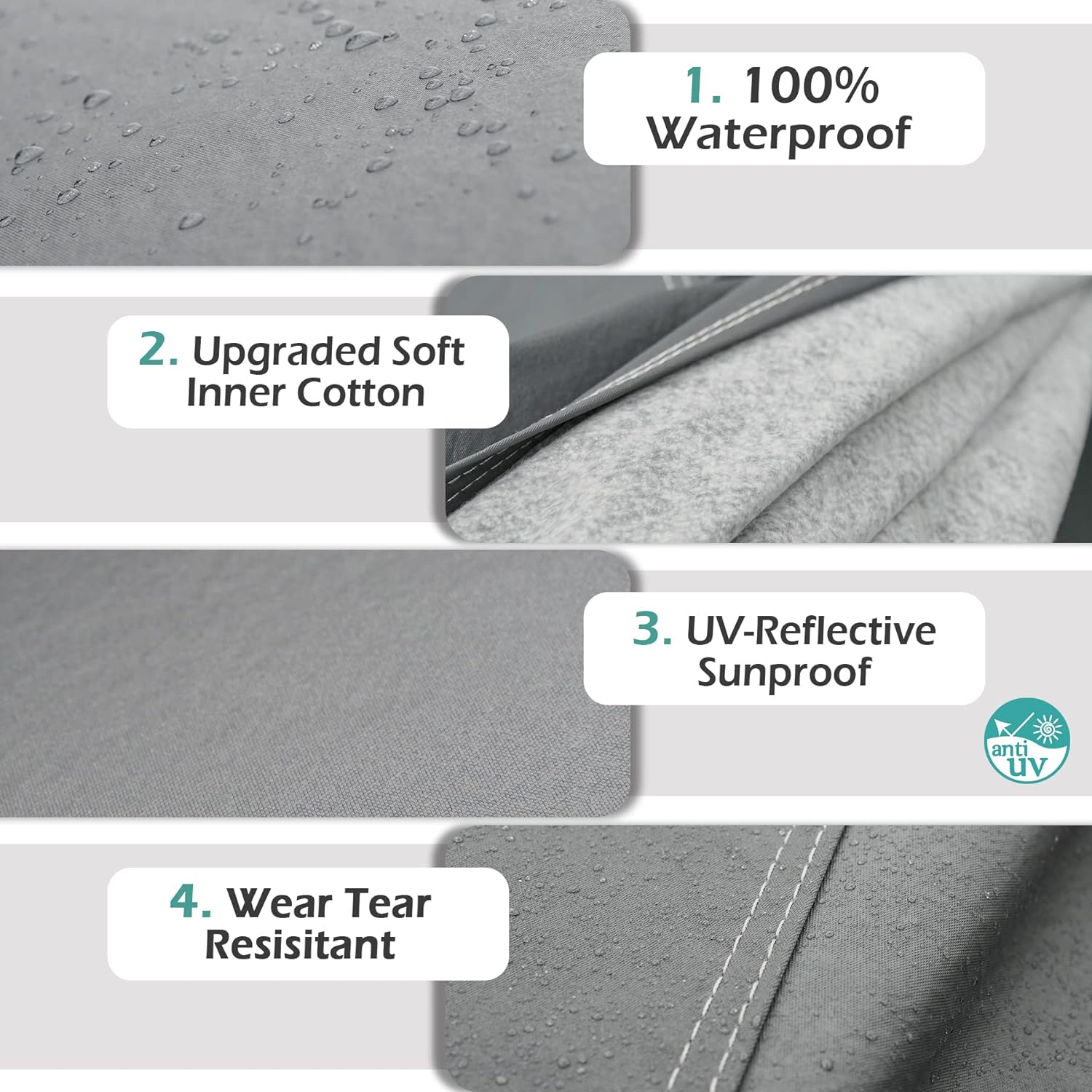 - 【Premium Material】1- Made of high-quality material vinyl, better waterproof, more wear-resistant and tear-resistant. 2- It has good sunproof and anti-ultraviolet effect, the vehicle can keep cool in hot weather. 3- The inner lining is upgraded soft cotton that would protect vehicle paint better.