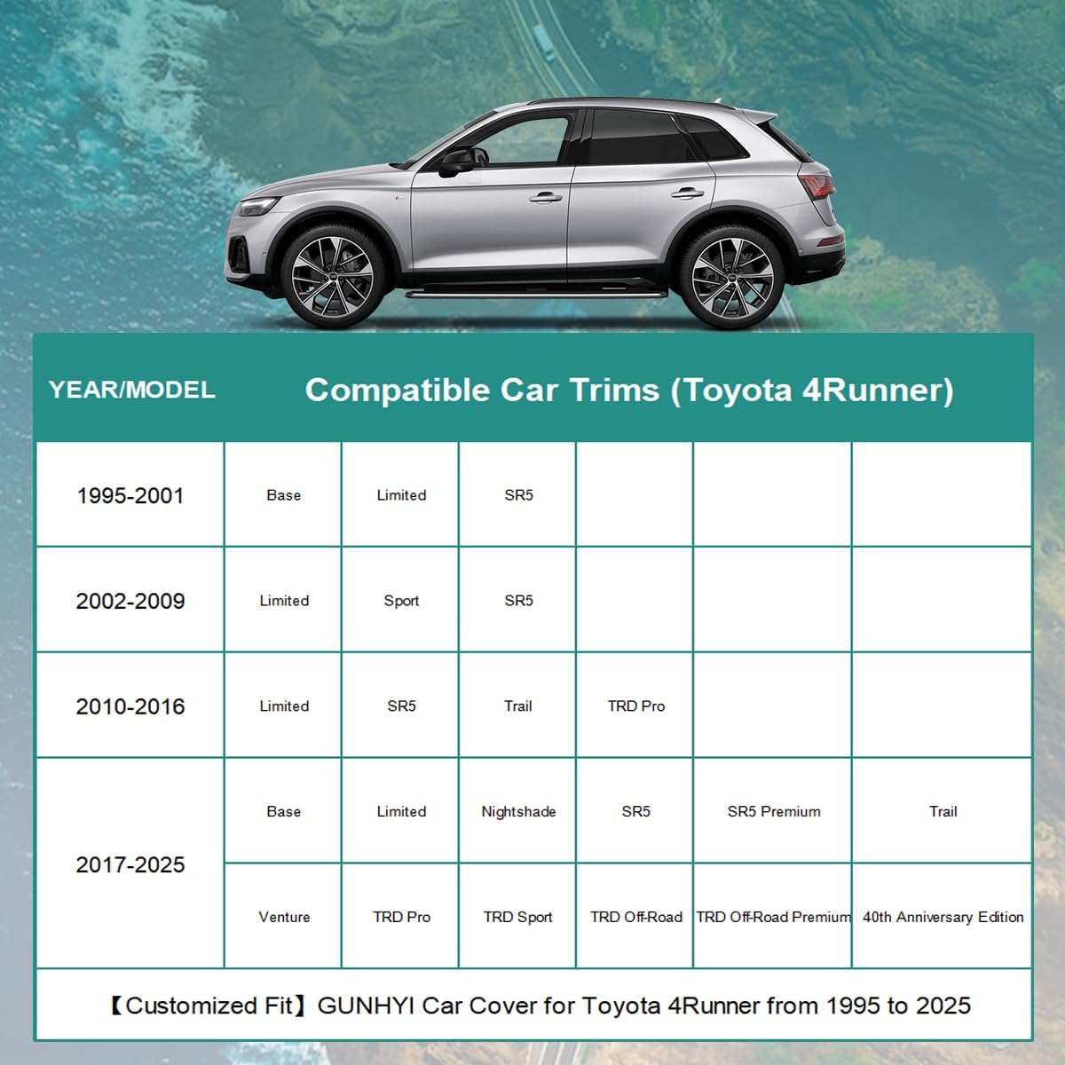 - 【Compatible with】This Full Car Cover Custom fit for Toyota 4Runner from 1995 to 2025. Comes with a microfiber towel that you can use to clean your car, because if there is sand on the surface of the car before use, it may damage the paint.