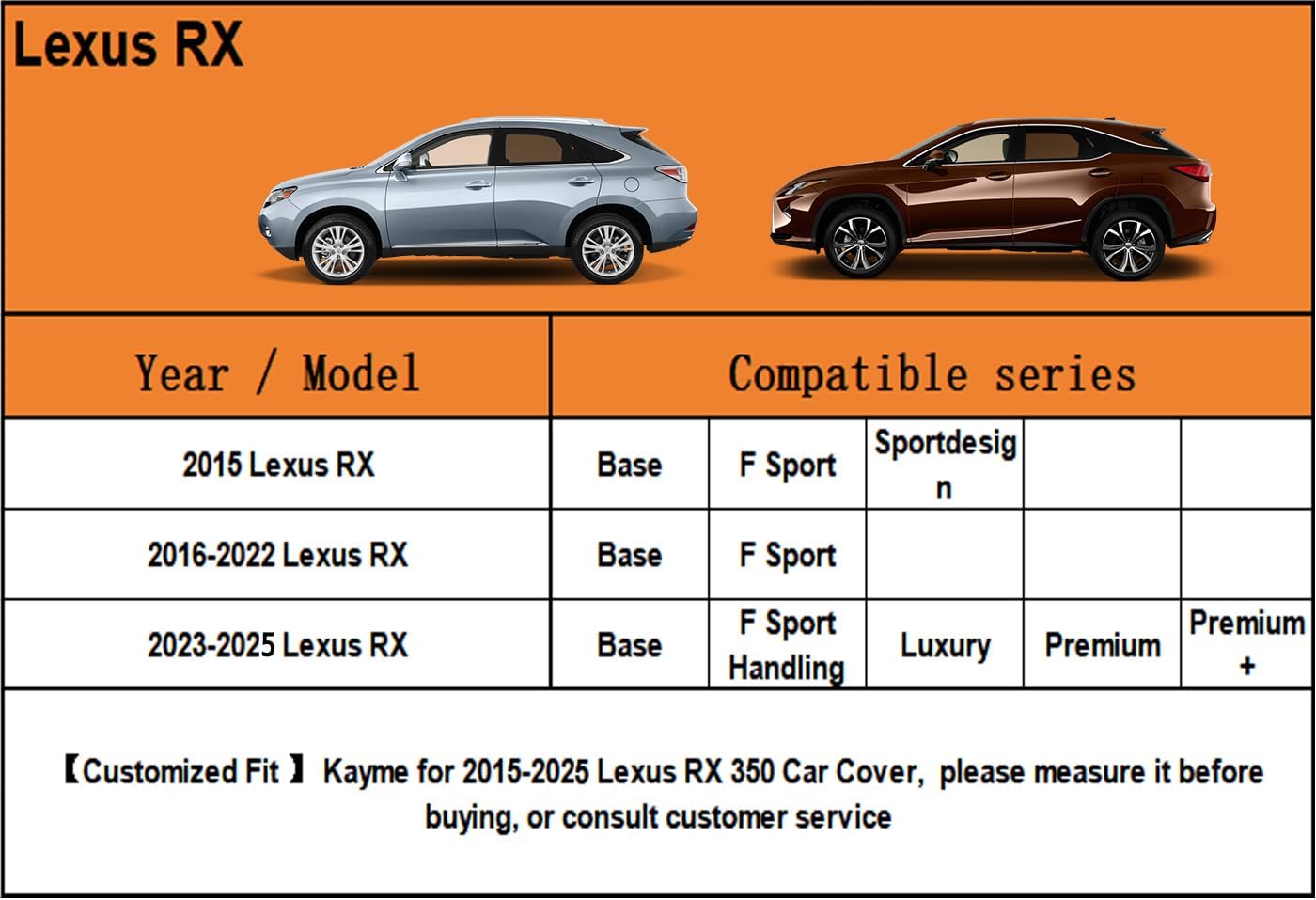 - 【Suitable for】— Custom fit for Lexus Lexus RX350 350/RX300/330/350L (2003-2025). Come with a large enough portable bag to store your cover when you do not use