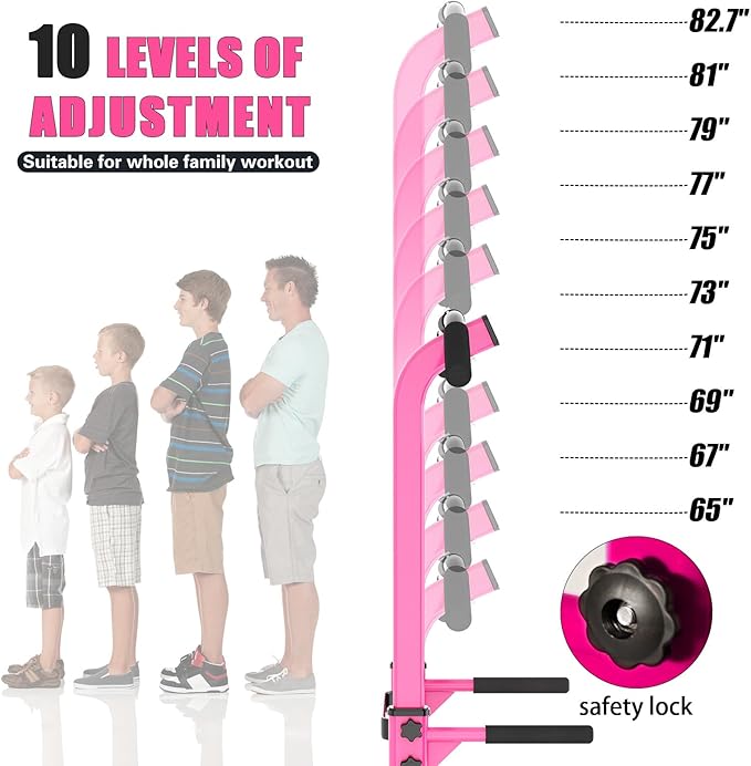 - 10 Levels Height Adjustment: Measuring 32.3Lx29.5Wx65~82.7H (inches) and supporting a weight capacity of 330LBS, this pull up bar is an ideal fitness tool for adults in their homes or offices. The height of the pull up tower can be adjusted from 58.5~82.7", making it suitable for all fitness needs. And the lowest level is tailored for kids, while the pull up bar station caters to the entire family's workout needs.