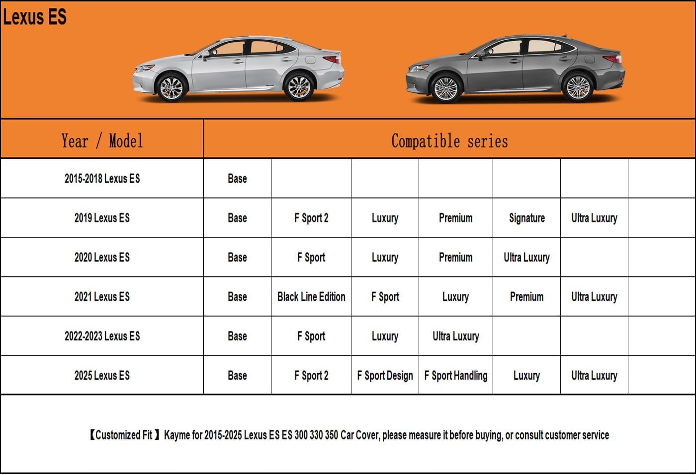 - 【Suitable for】— Custom fit for Lexus ES (2015-2025). Come with a large enough portable bag to store your cover when you do not use