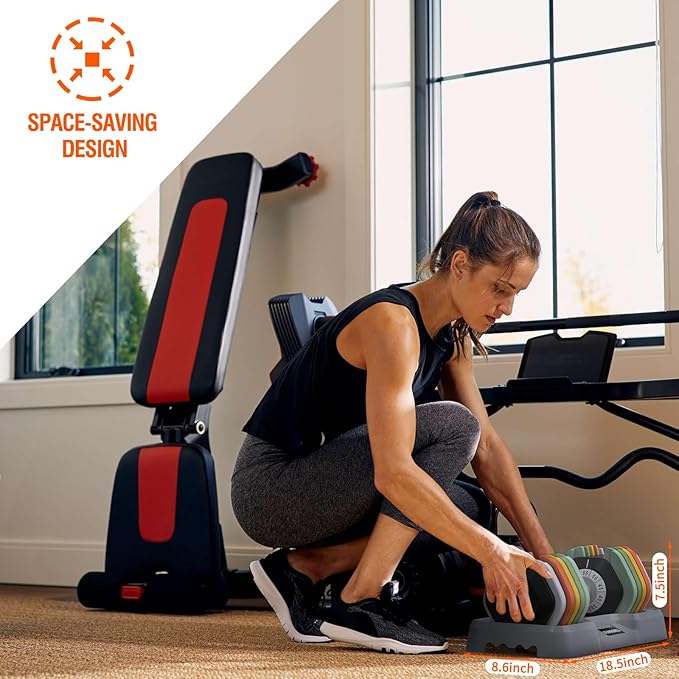 - 【Save Money & Space】It is great for your upper body workouts, which helps tone and sculpt your arms, shoulders and also strengthen your muscles. The dumbbell also come with a tray for secure storage of your units, without devoting too much floor space, and keep your home gym well organized.
