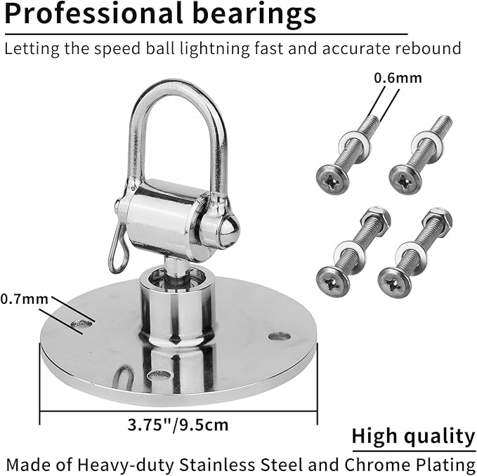 - UPGRADED SPEED BALL: Double-layer leather speed ball adopts pear-shaped design, which can be directly through the air and includes a light-weight milk capsule to ensure rapid and balanced rebound. Professional grade ball bearing swivel provide 360-degree flexible rotating for the ball and help it bounce back faster, allows you boxing effectively in high speed