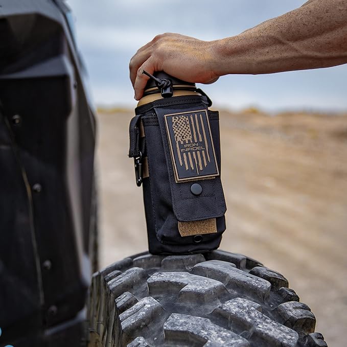 - PATENT PENDING DESIGN - This unique and original design is the only one of its kind. Iron Infidel created and patented this original design with our military, law enforcement, first responders , and hard working patriots in mind. These men and women put in long, hard days and a petite water bottle just won't cut it. Stay hydrated all throughout your hardest days, and you might as well do it with a bottle that looks cool. Grab the 21st century replacement of your old military canteen.