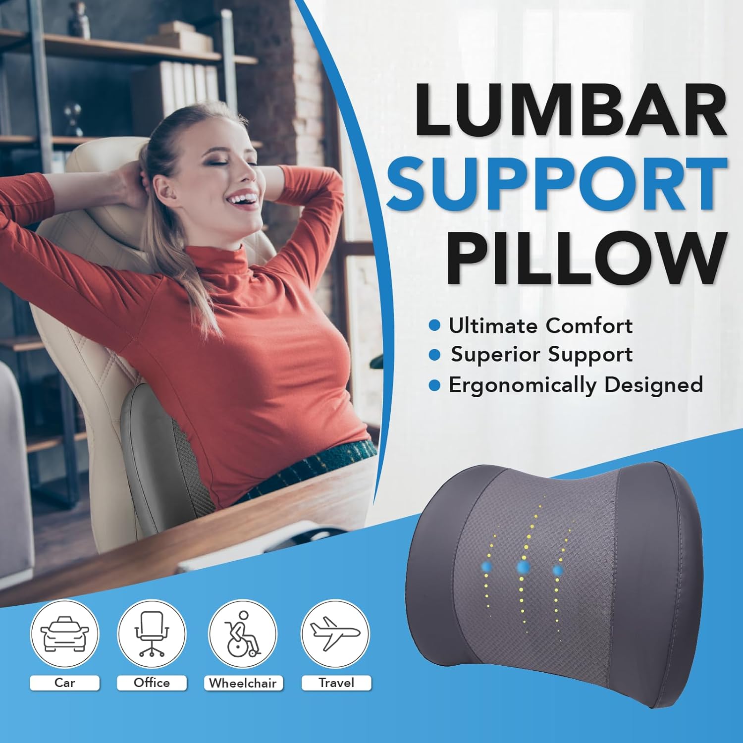 Lumbar Support Pillow for Car, Memory Foam Lumbar Pillow for Lower Back Pain Relief - Back Cushion for Driving, Chair Support for Car-Office Chair, Wheelchair - Dark Grey