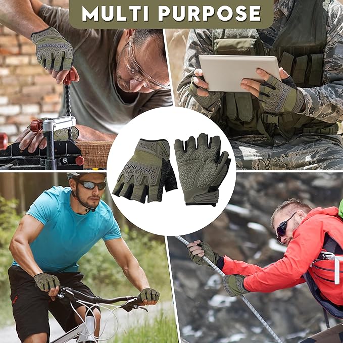 HANDLANDY Tactical Fingerless Impact Gloves for Men, Padded Grip Half Finger Work Gloves, Utility Trucker Driver Gloves (Army Green, Large (Pack of 1))