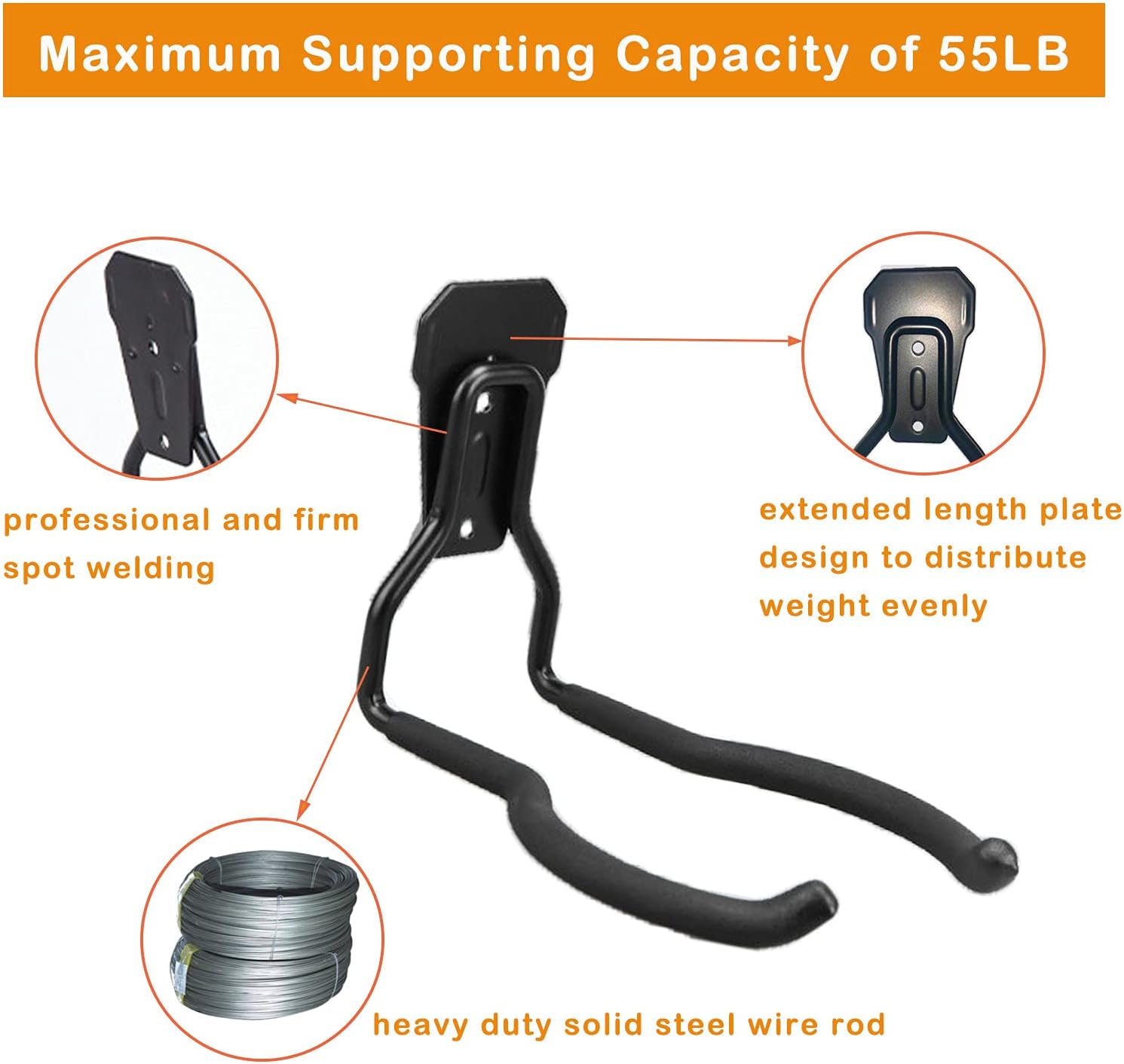 - Quality Weed Eater Hanger: Made of heavy duty solid steel with supporting capacity of 55 LB maximally. Double crossbars with soft anti-slip PVC coating, your tools won’t be scratched or fall off. Body with black spray treatment painting, which is rustproof and wearproof