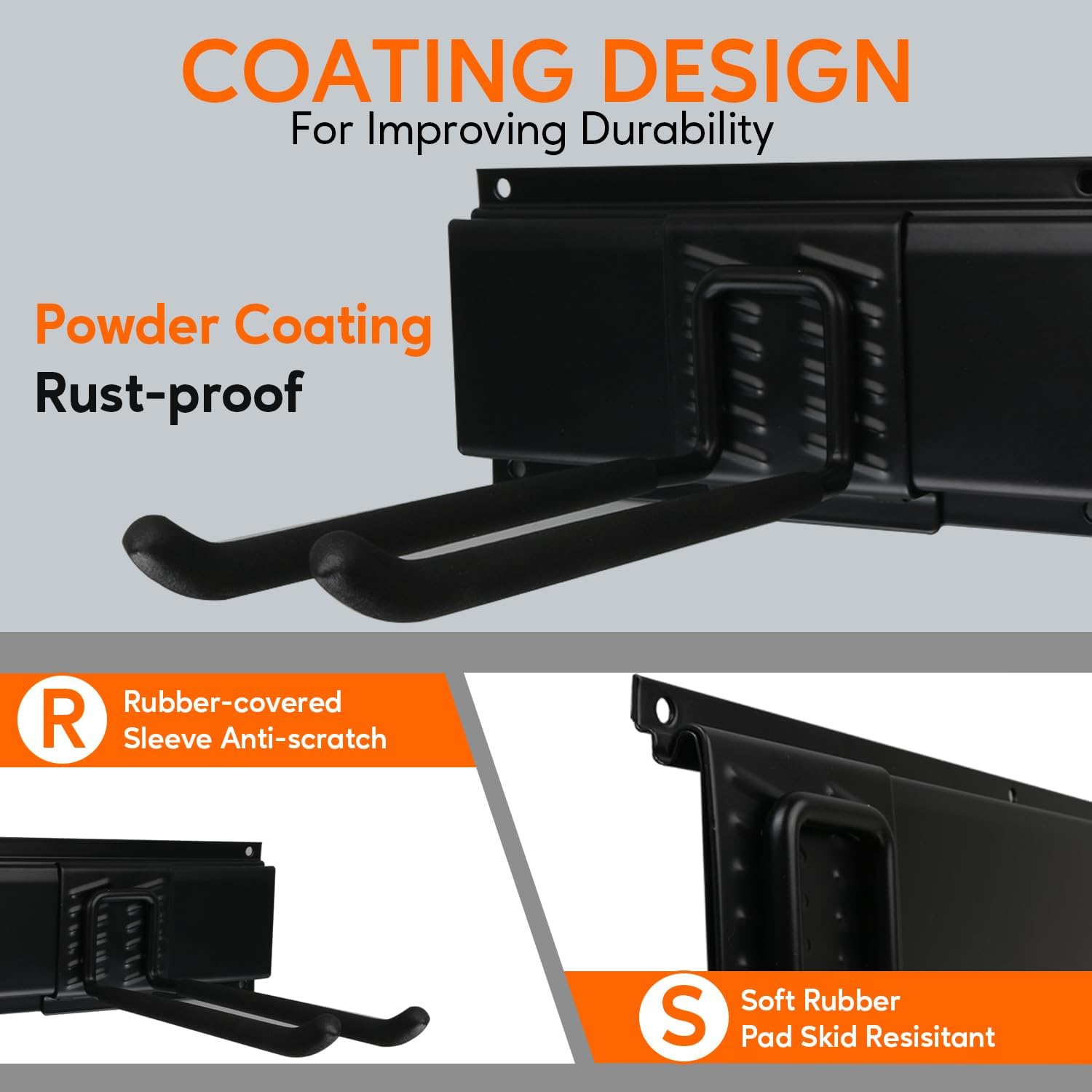 - 【Protective Coating】Rubber-coated hooks prevent slipping while safeguarding surfaces, making this garden tool organizer wall mount safe for delicate finishes on shovels, rakes, and power tools.