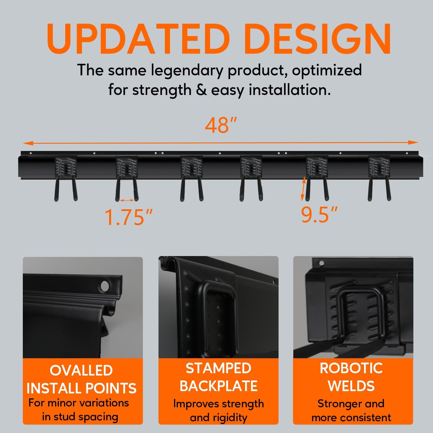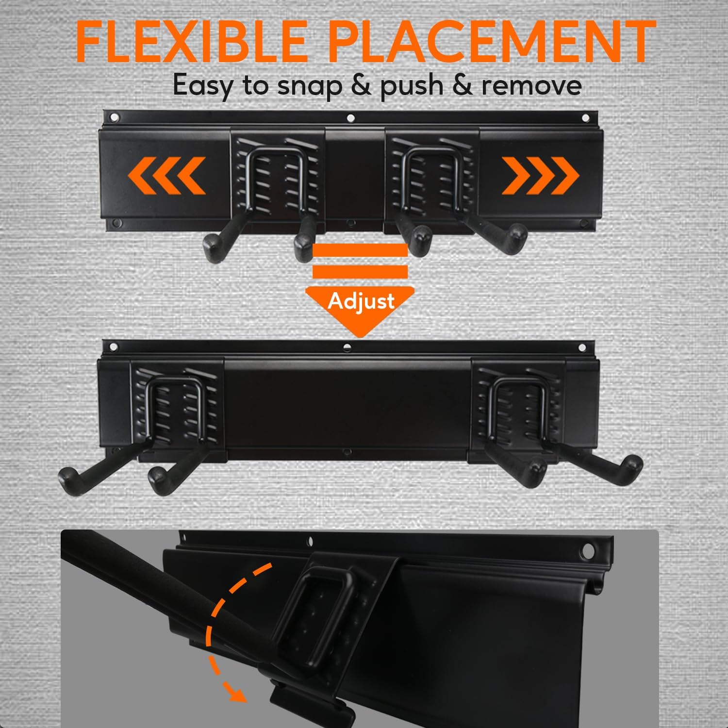 - 【Flexible Positioning】The garage track wall system allows quick relocation of hooks across the 48-inch rails, letting you adjust storage easily when organizing seasonal gear, sports equipment, or household tools.