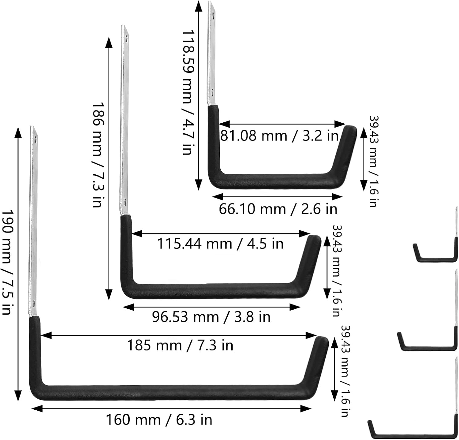 - Anti-Slip Garage Hooks: The garage hooks for hanging designed with soft anti-slip PVC coating to avoid scratches and fall off. The wall mounted J hook has a flat and large surface to stably hang the items or tools. Ideal tool organizer and storage in a garage, workshop, shed or pool.