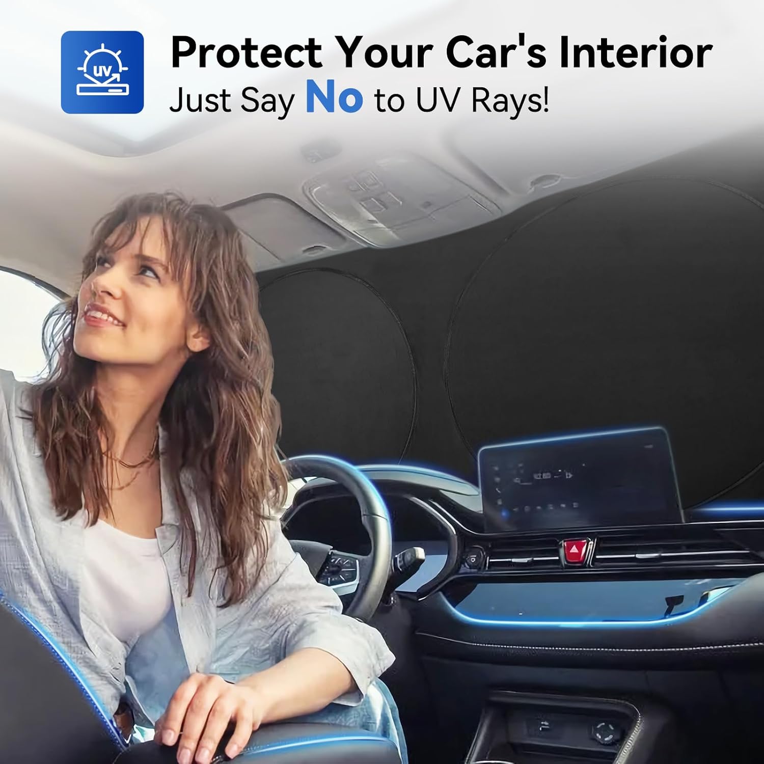 - Full Coverage: ARANA truck sun shades for windshield measures 163" Length, 37" Height, and the Ring Diameter 32" offers full coverage for your truck front windshield and side windows