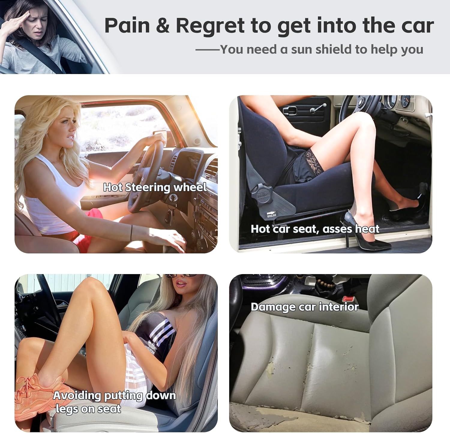 - 【The latest upgrade】The sunshade is made of 240T fabric with a thicker density, Nano coating, 4 anti-UV layers, and better reduce of the heat and UV rays.Double D-shaped steel ring design, So useful is the sunshade that allows you to enter the car easily .