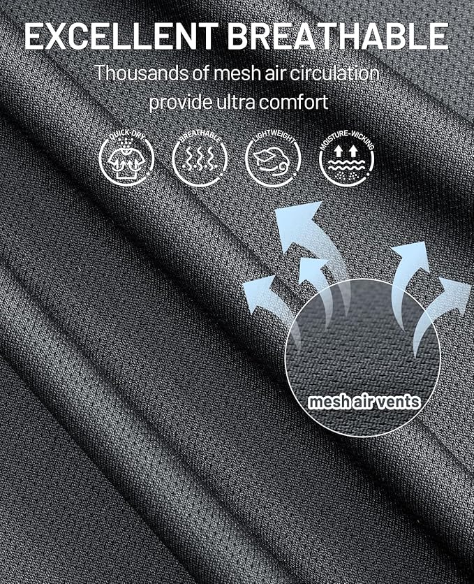 • Excellent Breathable --- Soft polyester fabric surface with thousands of mesh air circulation provides comfortable which can wick moisture quickly to keep your body cool while indoor or outdoor activities