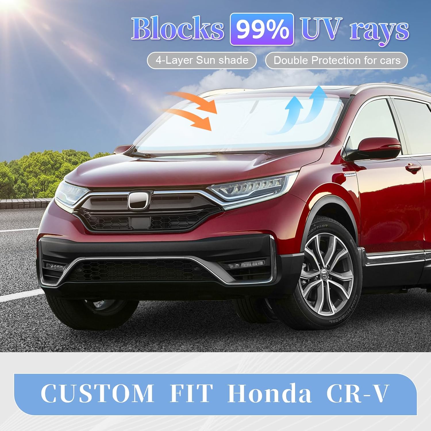 - 【Vehicle Specific 】Sunshade windshield Custom for 2017-2022 Honda CR-V (LX, EX, EX-L, EX-L Navi, Touring) (Not for 2022 Sport) --You've spent too much time in the California and Texas sun, buy it now, Please don’t waste time,reject the heat, quality products - Collapsible sun shade can be full covered on windshield and No gap. Fits like a charm!