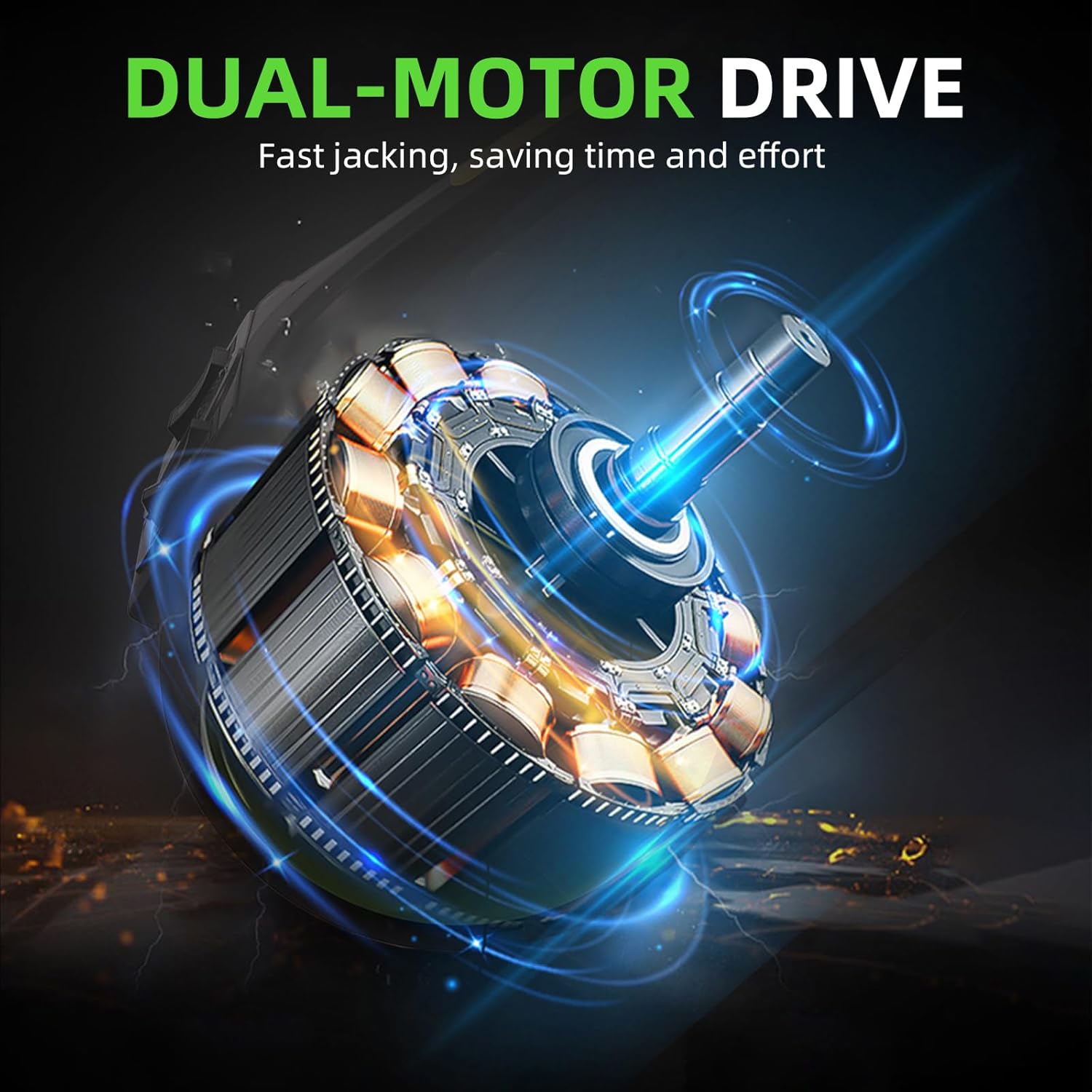 - Upgraded Car Jack: The hydraulic jack offers a more stable chassis and a hydraulic for load-bearing capacity. With a dual-motor drive, the car can be easily lifted in 1 minute, with a lifting range of 5.9”-14”/10”-17.7”