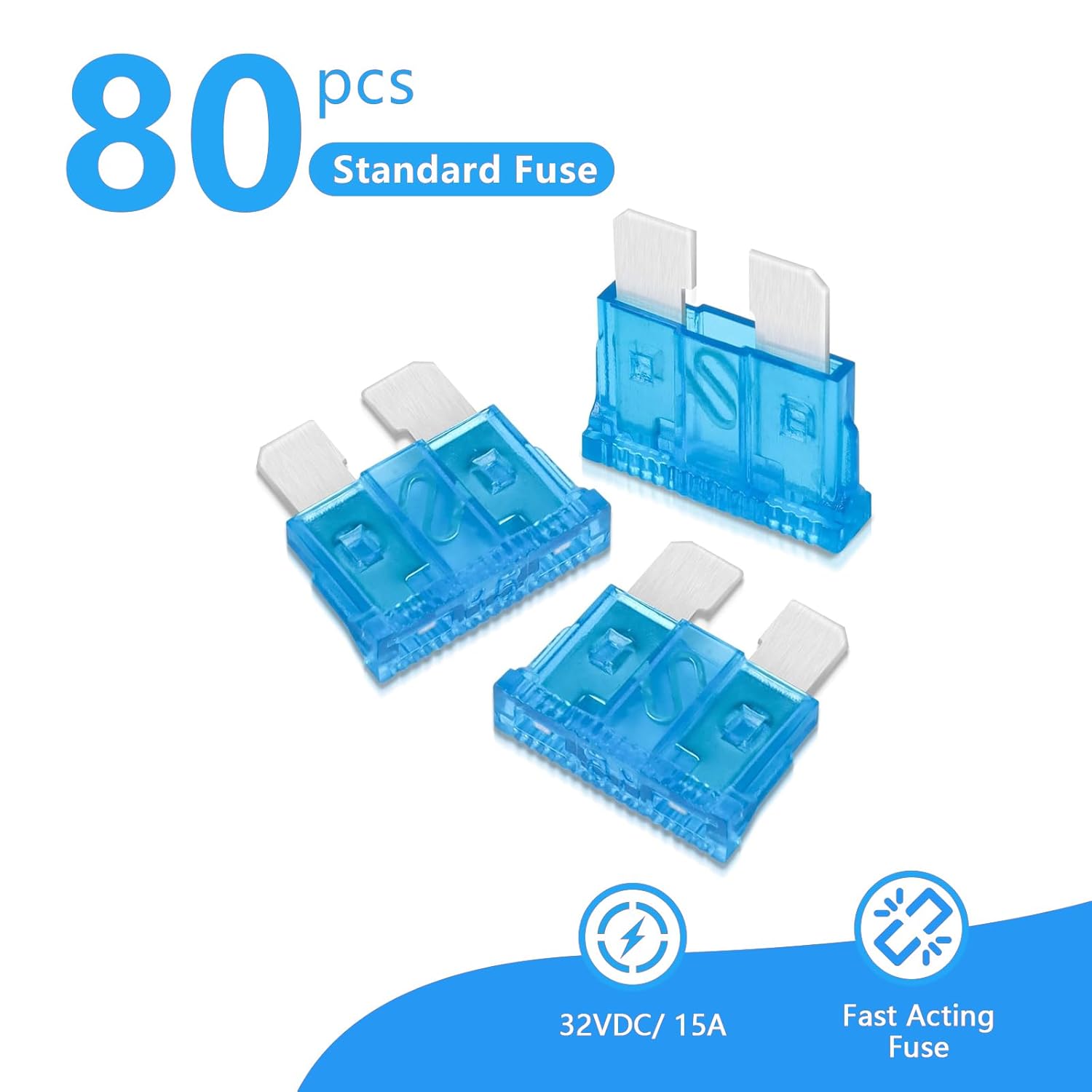 (80Pcs) 15 Amp Standard Fuse, 15A Car Blade Fuses for Car/RV/Truck/SUV/Motorcycle/Boat