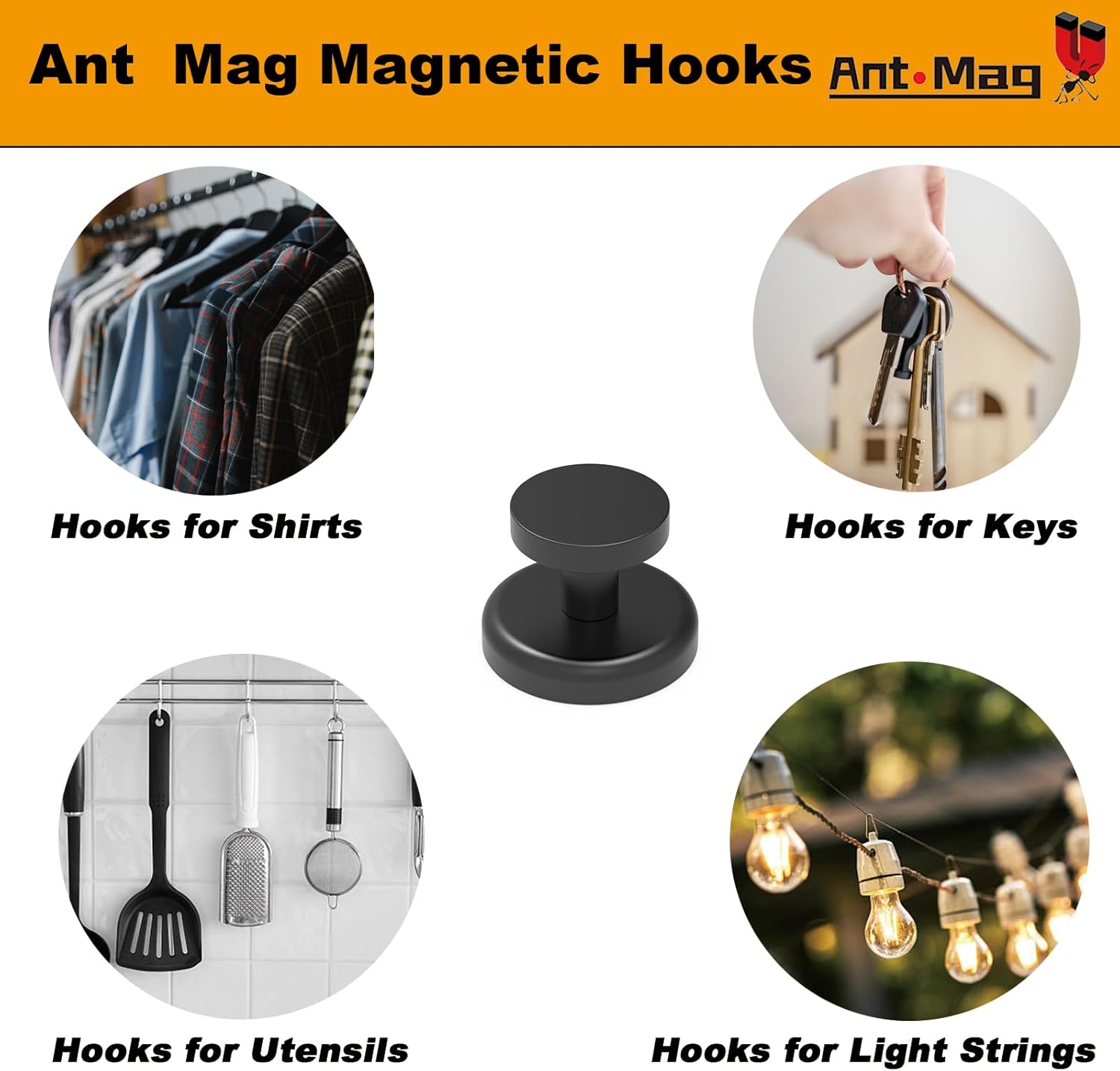 - 【EASY INSTALLATION】 It is easy to use the magnet hook onto the magnetic iron surface. No drilling holes, no sticky residue, no tools required, Ant Mag magnetic strong hooks can protect your surfaces of objects from being scratched and damaged.