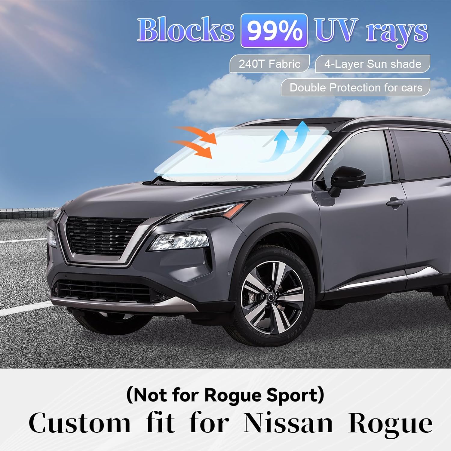 - 【Vehicle Specific 】Sunshade windshield Compatible with Nissan Rogue 2014 - 2020 (Not for Rogue Sport --You've spent too much time in the California and Texas sun, buy it now, Please don’t waste time,reject the heat, quality products - Collapsible sun shade can be full covered on windshield and No gap. Fits like a charm!