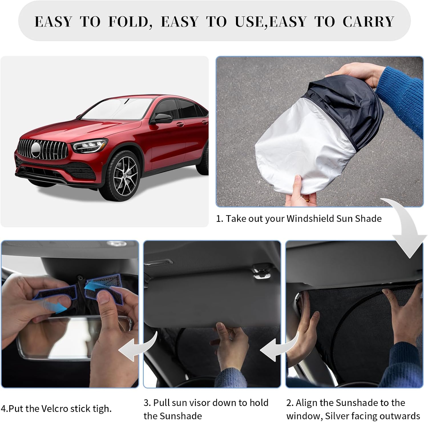 - 【Vehicle Specific 】Sunshade windshield Custom for Mercedes-Benz GLC / GLK - Class SUV 2016 - 2024 GLC GLC 300 GLC 350 GLC 500 --You've spent too much time in the California and Texas sun, buy it now, Please don’t waste time,reject the heat, quality products - Collapsible sun shade can be full covered on windshield and No gap. Fits like a charm!