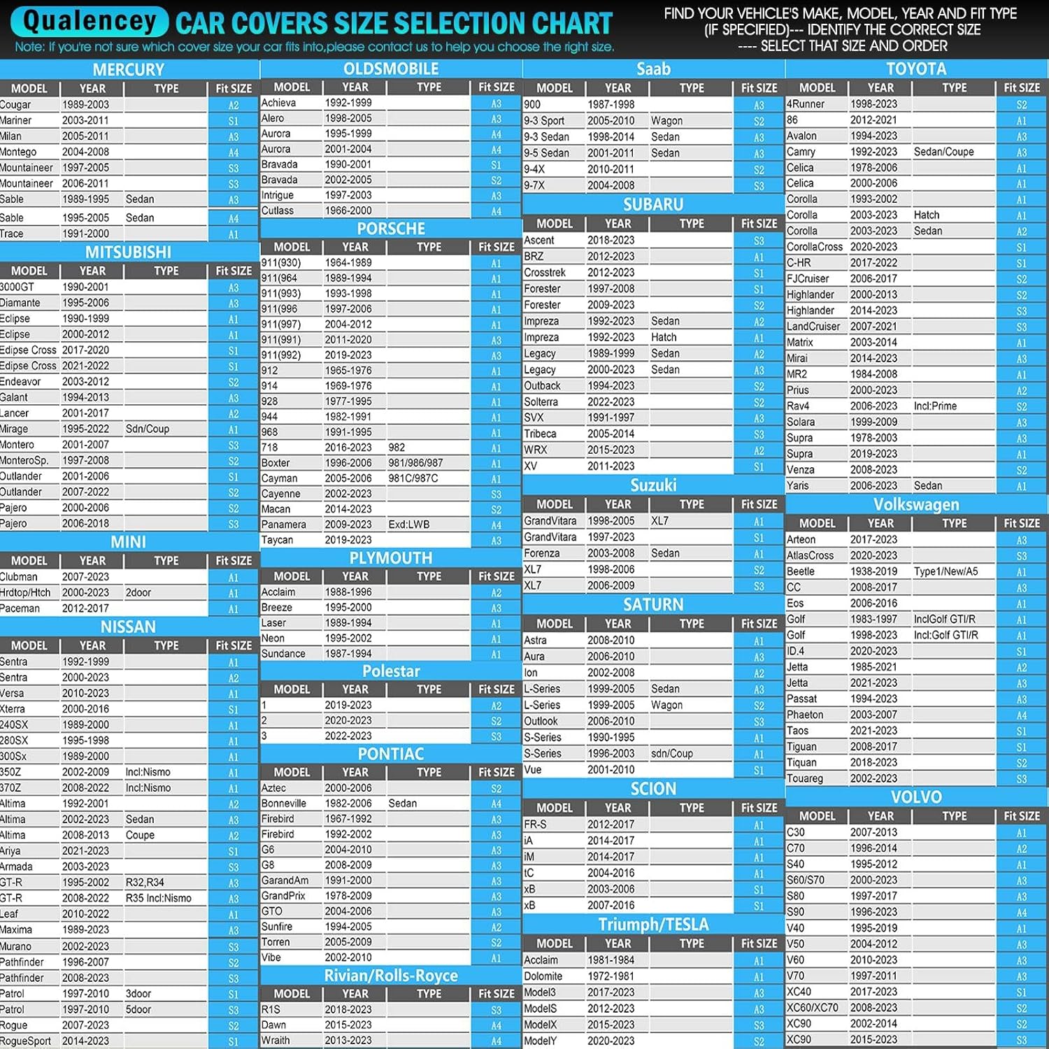 - 【High-quality Material】: The Qualencey car cover uses high-density 210T polyester, lightweight, durable, and waterproof up to 3000PA. Outperforms regular covers, ideal for waterproofing, insulation, breathability, and quick drying.