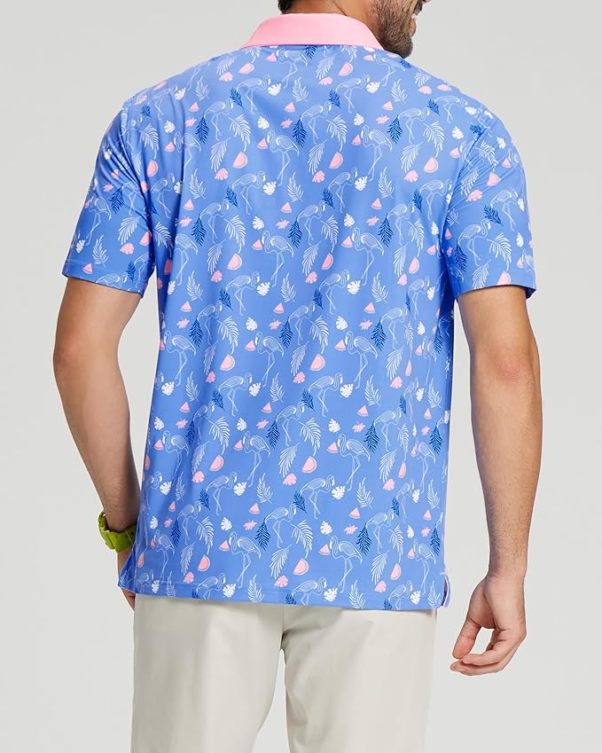 Golf Shirts for Men - Moisture Wicking Short Sleeve Performance Sport Casual Striped Collared Mens Polo Shirt